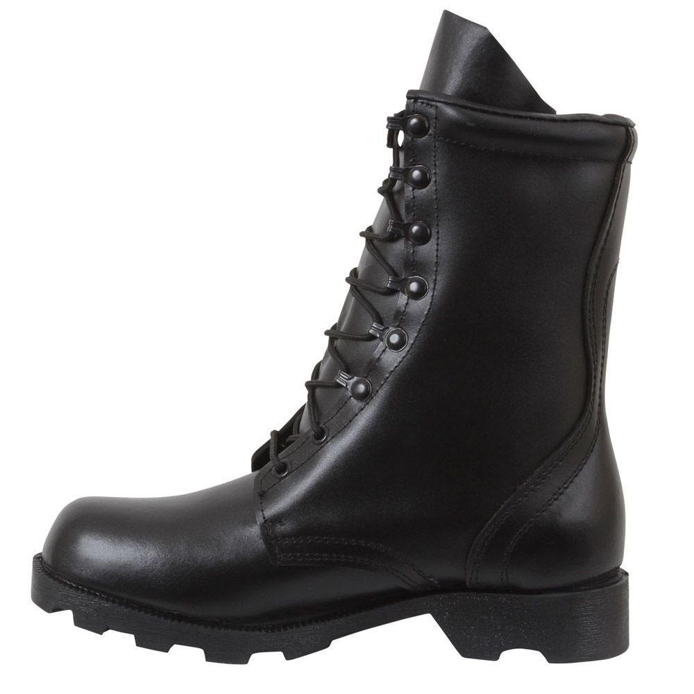 Military combat boots in GI style is offered with removable cushion insole. The boot also features a sturdy steel shank and padded collar for comfort. The vulcanized rubber sole offers extra stability in this boot that features an upper made of high quality leather. Made especially for those who are on their feet through the day, the GI Style Speedlace boot is manufactured to military specifications and is available in a range of sizes to suit feet of any size and type. The boot is 10” high and offers optimum ankle and feet support. This perfect fitting combat boot comes in a sturdy packaging.