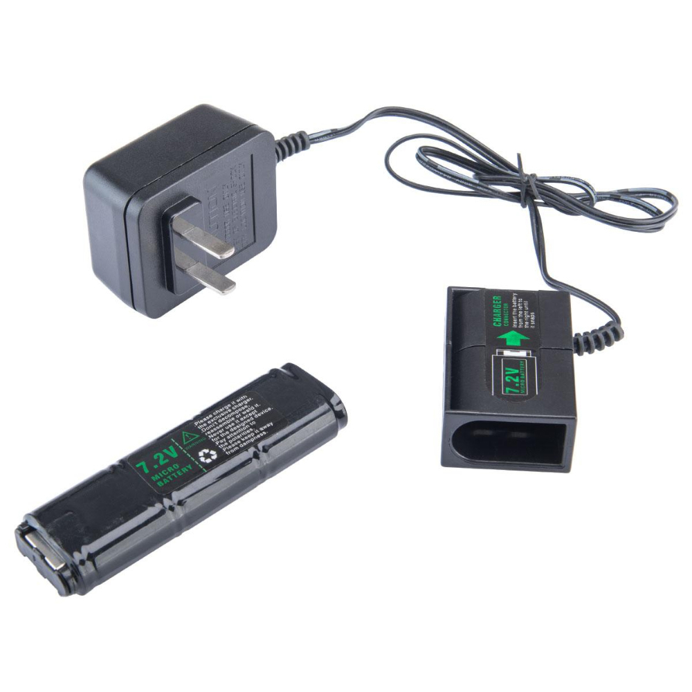 - Battery: 7.2v Micro Type (Battery and Charger included. Battery is a proprietary design.)