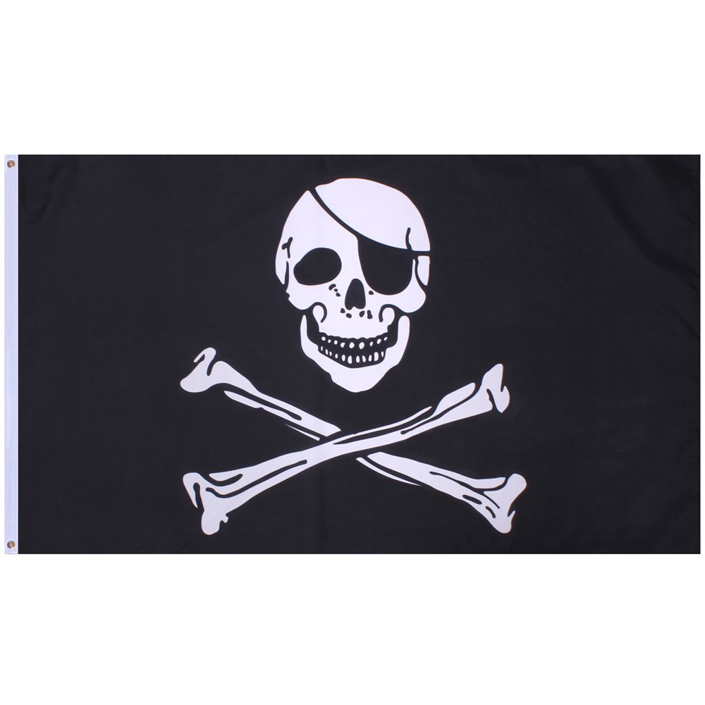 Show your rebellious side with the Jolly Roger Flag, a bold symbol of pirate heritage and fearless adventure. This 3' x 5' flag features the iconic white skull and crossbones design on a solid black background, capturing the classic look of pirate lore. Crafted from durable polyester, it’s built to handle indoor and outdoor conditions, making it ideal for themed events, nautical displays, or personal collections. The reinforced edge with grommets ensures easy attachment to any flagpole or wall mount.