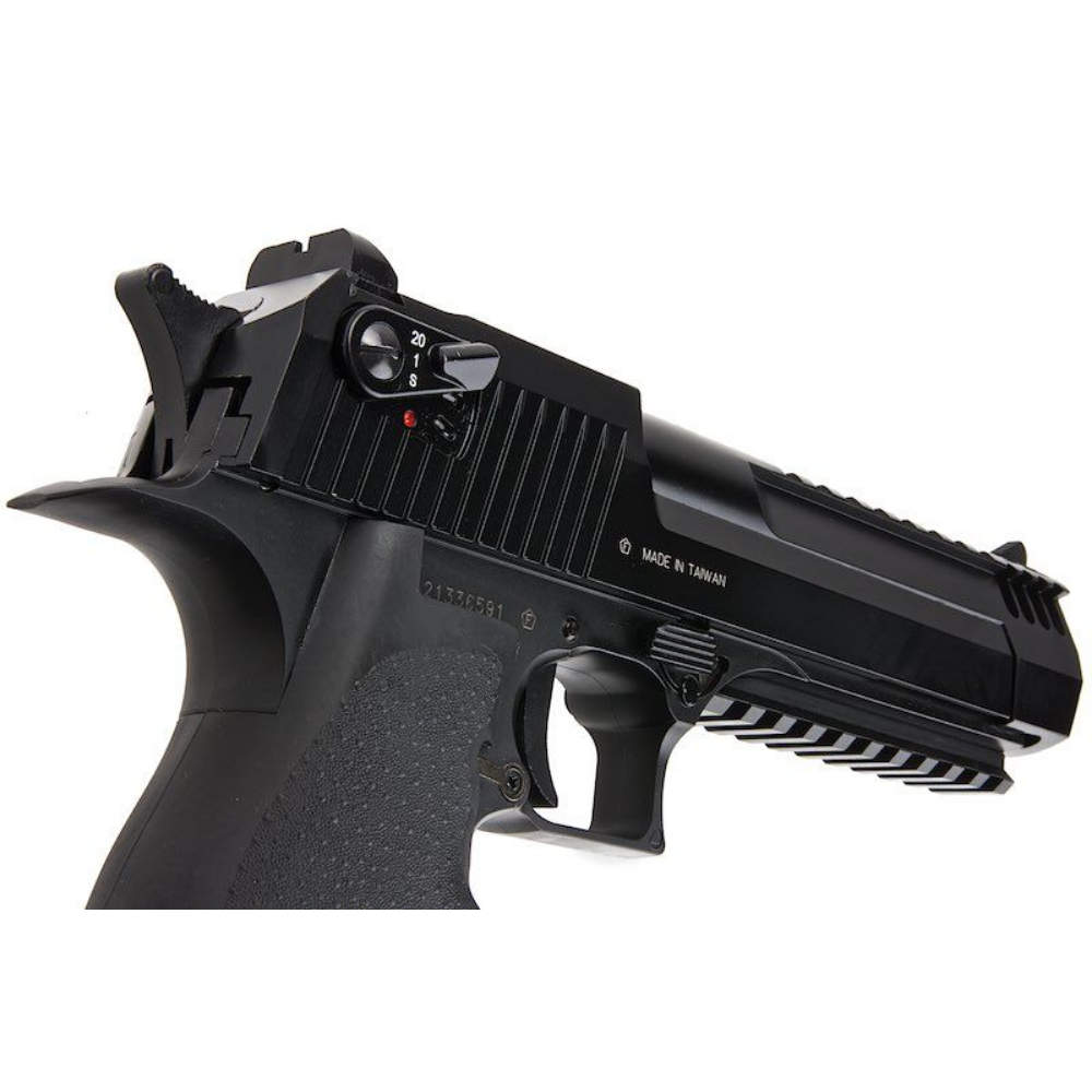 The KWC Desert Eagle L6 CO2 Blowback Airsoft Gun is not just a CO2 powered hand canon, it is a select fire hand canon! That is right, you did not read that wrong, this Desert Eagle can fire in not just Semi-Auto, but full-auto as well. Made of a metal slide and a polymer frame, this gun is really hefty, if you have big hands this gun will feel great. You may also need a strong grip as this gun has a heavy kick, and did we mention it could go full auto?
