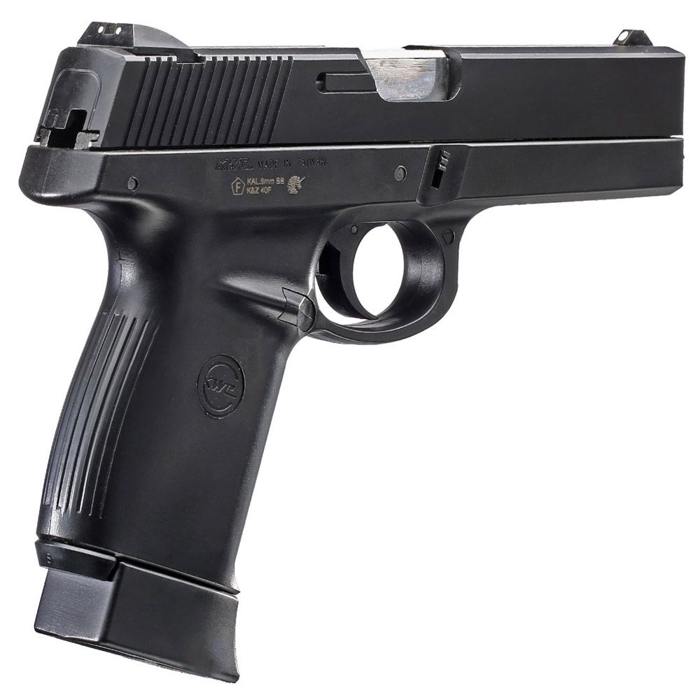 The KWC SW40F is a CO2-powered blowback airsoft pistol that will give you an enjoyable and realistic shooting experience. The metal slide cocks back during shooting, with a satisfyingly snappy recoil for added realism. The full size drop-out mag is constructed from full metal and houses both the CO2 and airsoft BBs. For easier maintenance and gun cleaning, the SW40F is fully field-strippable.
