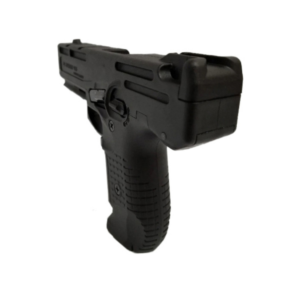 M925 replica features a durable steel alloy frame and polymer outer casing. It fires loud 9mm P.A.K. blanks as fast as you can pull the trigger in semi-auto mode. In full-auto mode it fires up to 16 rounds per second. This replica is fed through a 16 or 25 round magazine up through the pistol grip. The loud report of the 9mmPA blank rounds is comparable to live-rounds. The selector lever located on the left side of the frame switches between semi-auto, full-auto, and safety modes. The inner slide recoils to its rear position as spent cartridges are ejected from the gun and resets to load the next round. It locks in its rear position upon firing the last round and can be reset with the slide release lever. This replica operates with all the realism of a live firearm and is perfect for safe training, reenactments, films, and canine training. Used by many military and police organizations for training realistic training scenarios.
