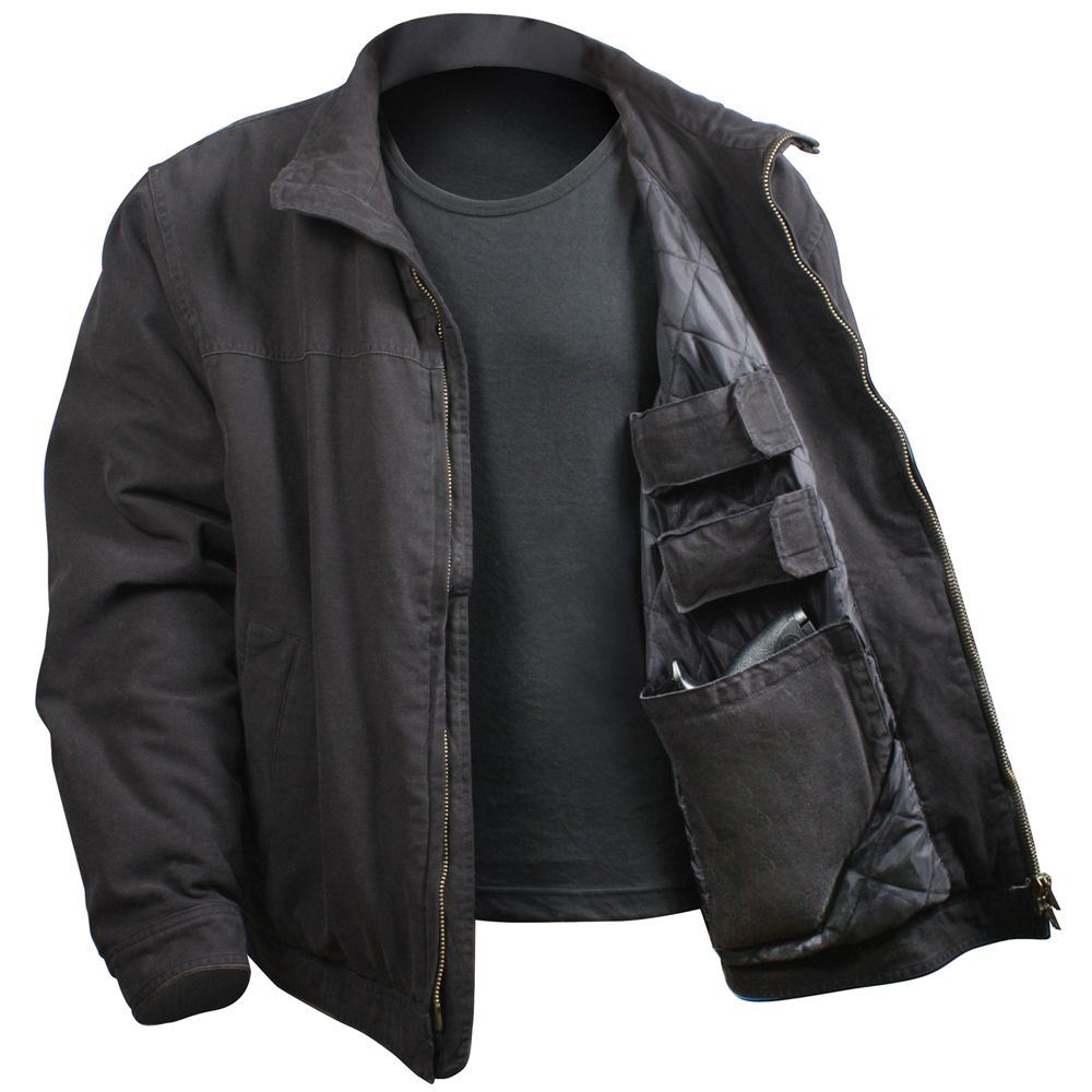 Stay protected and prepared through all seasons with the Mens 3 Season Concealed Carry Jacket. Built for fall, winter, and spring conditions, this jacket combines concealed carry functionality with rugged outerwear performance. Its 100% cotton washed shell keeps the elements at bay, while the quilted polyester liner retains heat. Featuring four inner mag pockets and two padded concealment pockets with hook and loop closures, this jacket is perfect for CCW users who need discreet, secure storage. A brass-finished two-way zipper with interior storm placket, adjustable wrist cuffs, and waist straps ensure a reliable fit and all-weather protection.