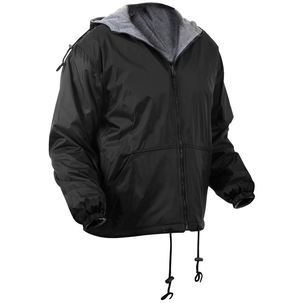 Reversible Fleece Lined Nylon Jacket w Hood is particularly designed for men. This jacket has nylon outer shell which makes it water proof. It is perfect to be used during rainy season. The jacket has fleece lining made of polyester. It keeps you warm and cozy on a cold winter day. It is great for outdoor activities on a cold winter day. The jacket has hood with drawstring. It is made with a blend of polyester and cotton which makes it strong, sturdy and durable. Acrylic fur lining provide additional warmth. The knit waist band and the cuff make it more comfortable. It has two pockets on either side.
