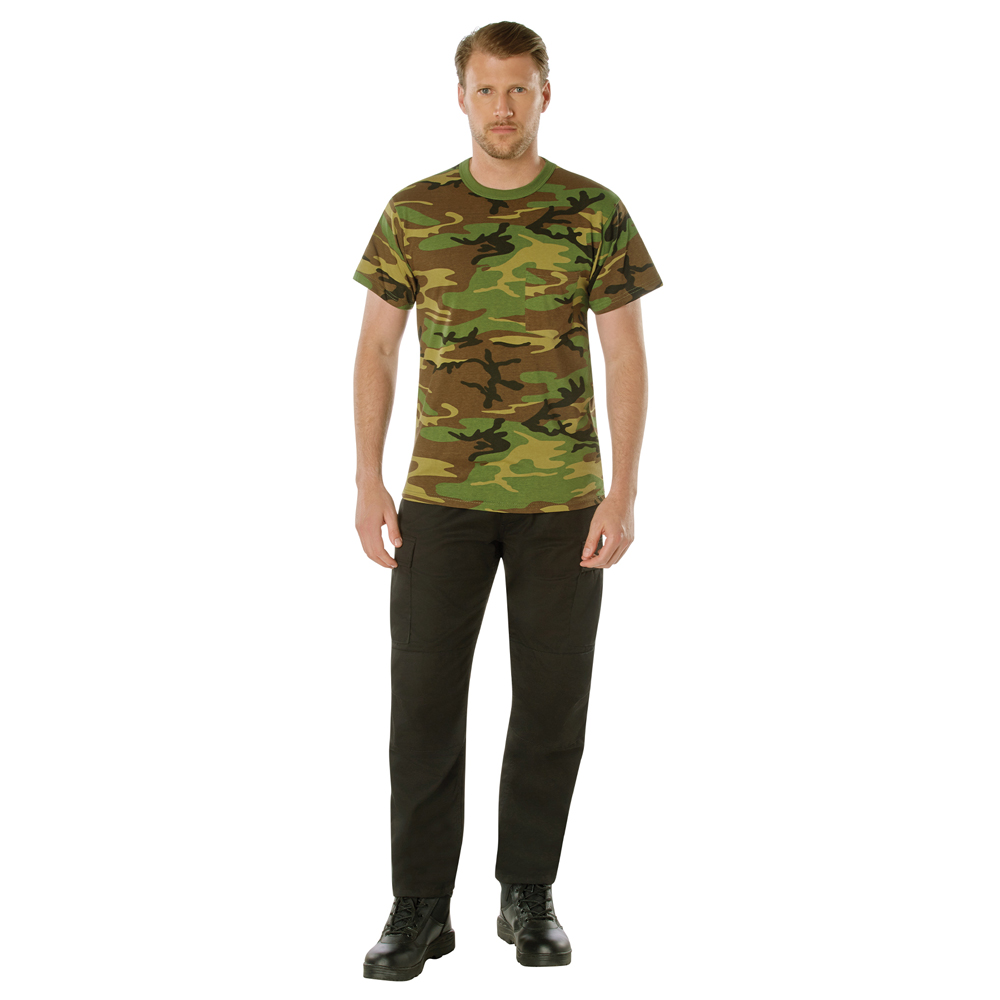 Camouflage T-shirt with Pocket is made of a unique blend of cotton and polyester material. The high quality washed material used for the production of this T-shirt makes it a comfortable wear for all seasons. This T-shirt comes with a pocket on the front left side chest area. Unisex in design it will fit both men and women perfectly. It has been in line with government specifications, which only add to the feel of wearing a camouflage T-shirt. It is available in a range of sizes from small to 4Xlarge. It is designed with short sleeves which makes it a great woodland camouflage T-shirt.