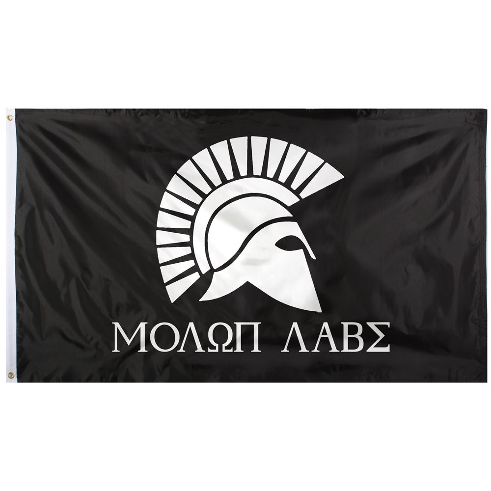 - Displays the classic “Molon Labe” slogan and Spartan helmet logo at the center.