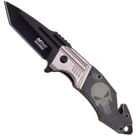 MTech USA Skull Design On Checked G10 Handle 4.75 Folding Knife