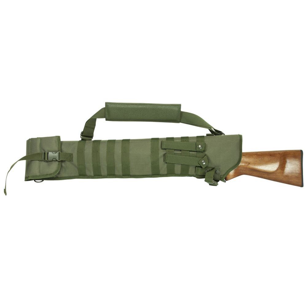 The NcStar Vism Tactical Shotgun Scabbard is designed for shoulder carry or modular mounting. Webbing on both side with four detachable PALS straps for ambidextrous usage. The four D-ring locations for attaching the padded shoulder sling to for multiple carry options or preferences.