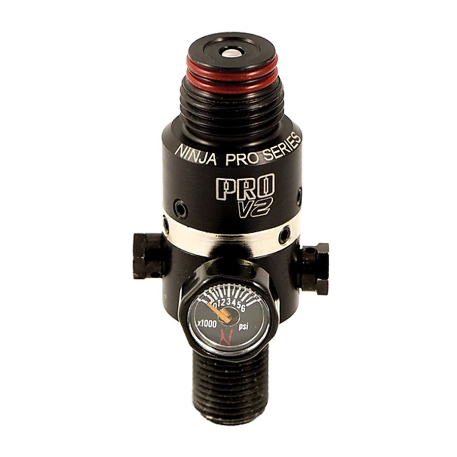 Ninja PRO V2 regulators are fully rotational so you can set the gauge and fill nipple in any position you want without digging into your wrist. This regulator, like all Ninja regulators, also features our ball valve design which gives you 30% increased flow over other regs. This regulator comes standard with durable brass alloy bonnet, mini fill valve and micro gauge. ALSO Available as SLP and SHP and 3k rated for 3000 psi tanks.