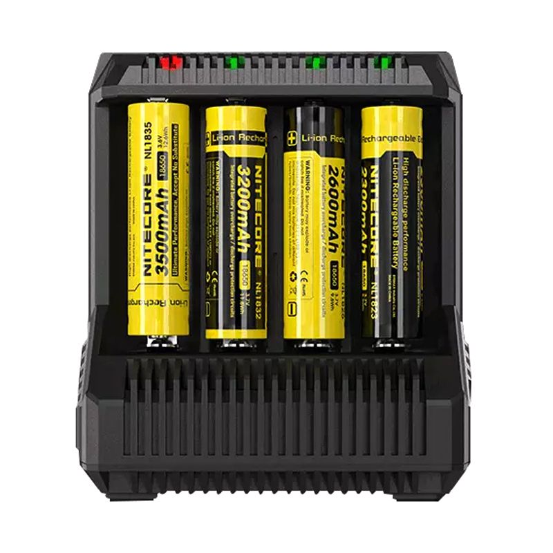 Say goodbye to long charging times. This new Nitecore charger comes with 8 charging bays to power up a huge variety of your batteries at an incredible charging current of up to 1500 mA per slot. Its smart technology will immediately detect the chemistry and voltage of your battery and provide for automatic current selections, displaying charging status of batteries inserted on an easy to read LED display above respective bays. Integrated Dual-port USB power bank allows for charging of smartphones and other devices as well. Along with being effective and flexible, this charger also plays the safe side being crafted with ABS fire retardant plastic and integrated with a reverse polarity protection.