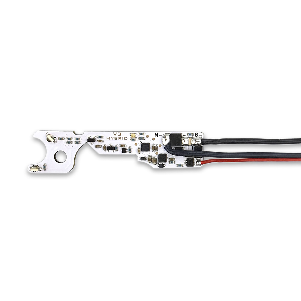 The Perun V3 Hybrid MOSFET Universal Wired is an advanced electronic control unit designed to replace mechanical contacts in your airsoft replica or gel blaster, significantly enhancing its performance and reliability. Utilizing optical and magnetic sensors, this system eliminates many moving parts that are prone to damage. Its adaptive trigger control allows for easy adjustments to trigger travel length, from very short to long, even in the field and with most stock triggers.