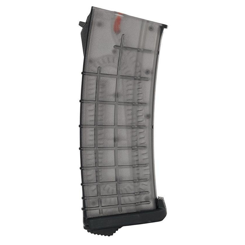 The PTS TPM-AK Magazine (AEG) is a mid-cap magazines for airsoft AK type electric guns. The magazine features 155 bb capacity, a translucent reinforced polymer body that can withstand rough field conditions and allow for easy visual identification of remaining rounds inside the magazine. It also includes the PTS EPM baseplate for bump or drop protection. The magazine is compatible with Tokyo Marui, CYMA, Arcturus AK Series, and most other AK AEG's.