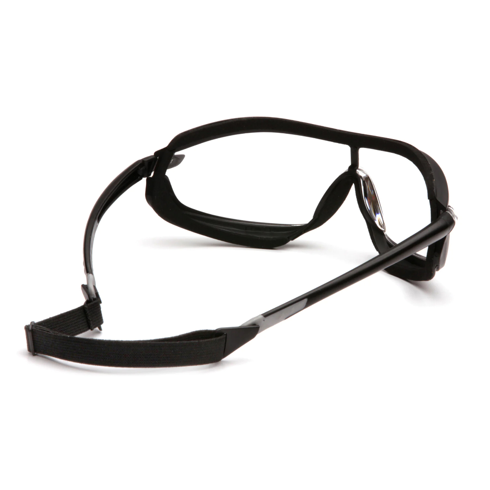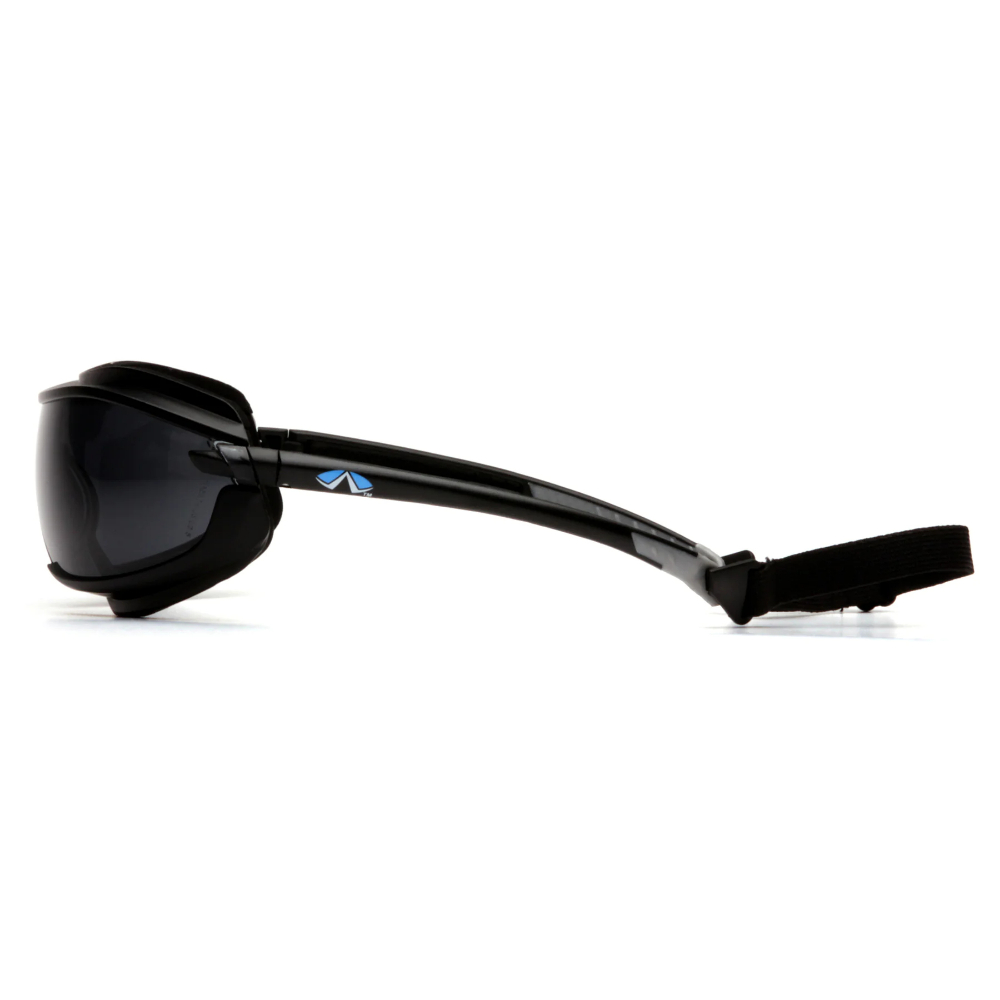 Pyramex Safety - XS3 Plus - Black Frame/Gray Anti-Fog Lens - Sportslook safety spectacle with superior eye protection. Unique temple design with co-injection temple tips for cushion comfort. Slim temples for a customized fit. Open temple tips allow a clip-on cord option for a goggle-like fit. XS3 Plus has foam padding and a cord option to provide a seal to keep out dust and airborne particles. Soft foam padding offers comfort fit.