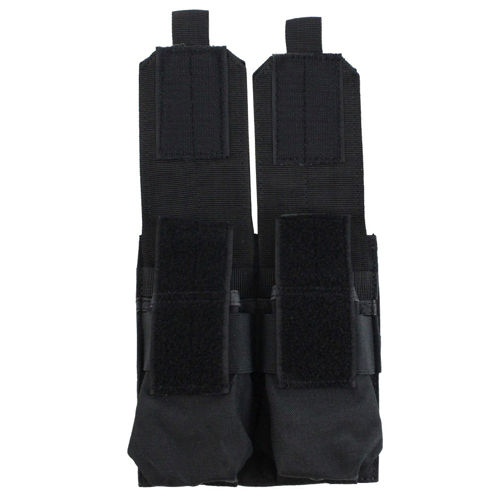 Carry more firepower into the field with the Dual M4/M16 Mag Pouch from Raven X. Designed to hold up to four magazines, this double pouch features rugged nylon construction built to withstand tough conditions. Each compartment is wide enough to fit two mags and is secured by a hook and loop flap with pull tabs for easy access. With MOLLE-compatible PALS straps, you can mount it onto tactical vests, belts, or packs for mission-ready modularity.