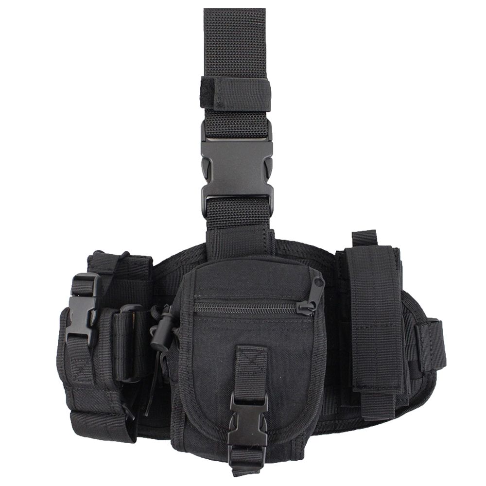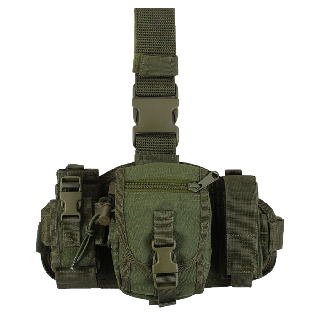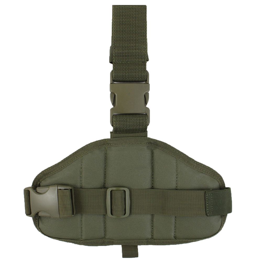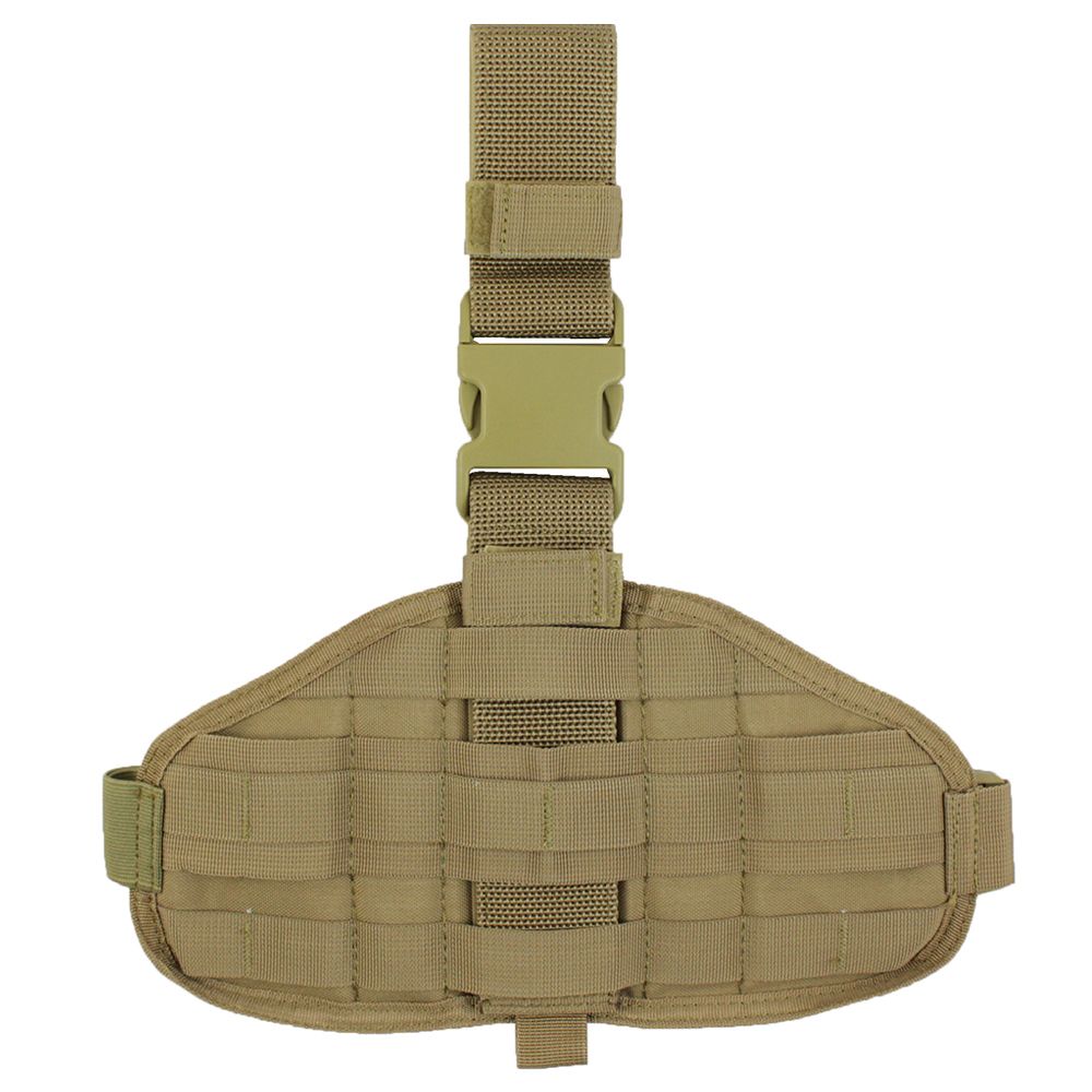 The Drop Leg Panel allows tactical operators to carry their loads in comfort. The non-slip padded platform is held in place with adjustable straps. The platform has five rows of MOLLE webbing for modular customization. The three included pouches are detachable. Panel dimensions are 165 mm (6.5 in) x 305 mm (12 in)