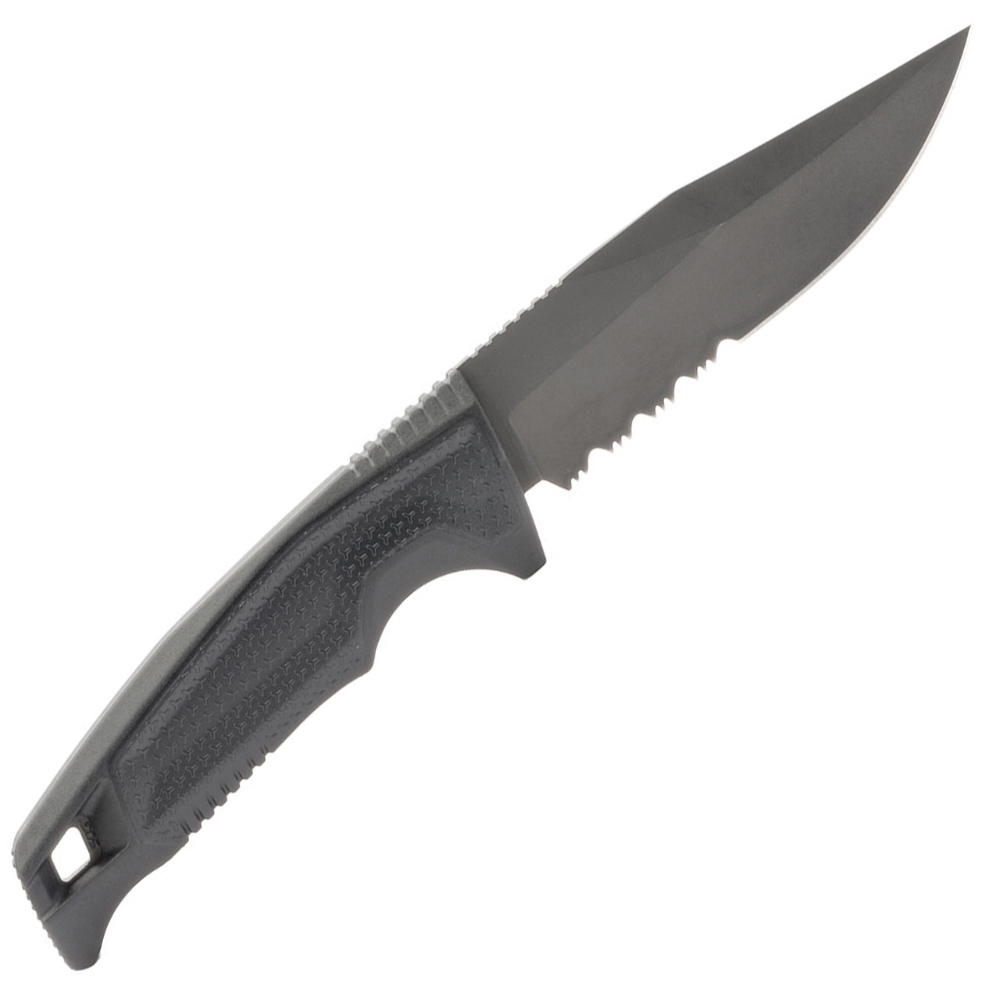 A wholly modern fixed-blade duty knife, Recondo FX can trace its warfighter lineage back to the origins of SOG. The overmolded rubberized grip allows for optimal hand grips at all angles in virtually all environments. The full-tang CRYO 440C stainless steel blade has outstanding corrosion and wear resistance. SOG’s UMS-compatible sheath is ambidextrous and provides multiple mounting options and features a tool-less tension adjustment system allowing for the perfect draw. Versatile and adaptable, the whole world serves as Recondo FX’s drop zone.