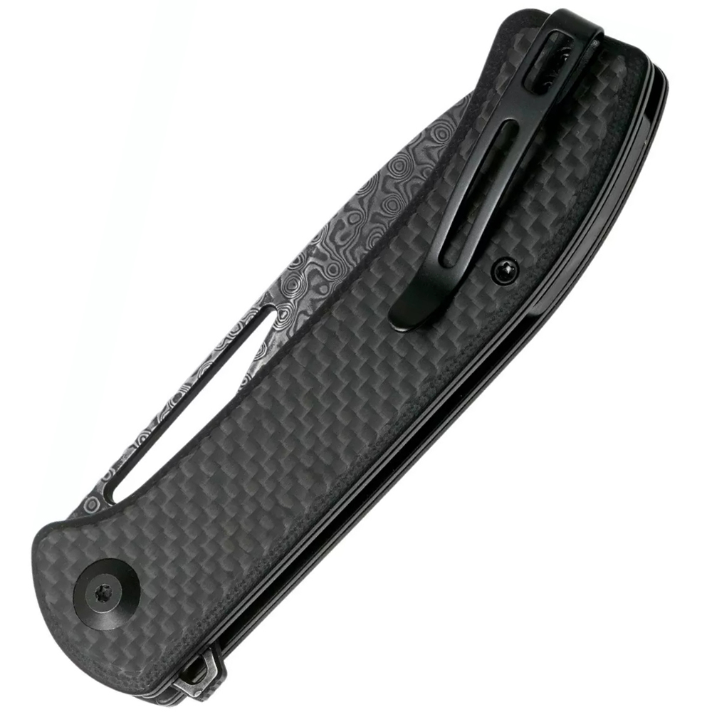 The Riffle, designed and produced by CIVIVI, has a unique profile. The blade is a broad drop point with a deep thumb hole opener. The G-10 handle is smooth yet textured enough for a good grip and the 4.50" handle length fits perfectly in any hand comfortably. The black stainless steel liners are solid and reliable to keep this blade put together for years to come. The Damascus blade steel is strong, excelling in corrosion resistance and edge retention.