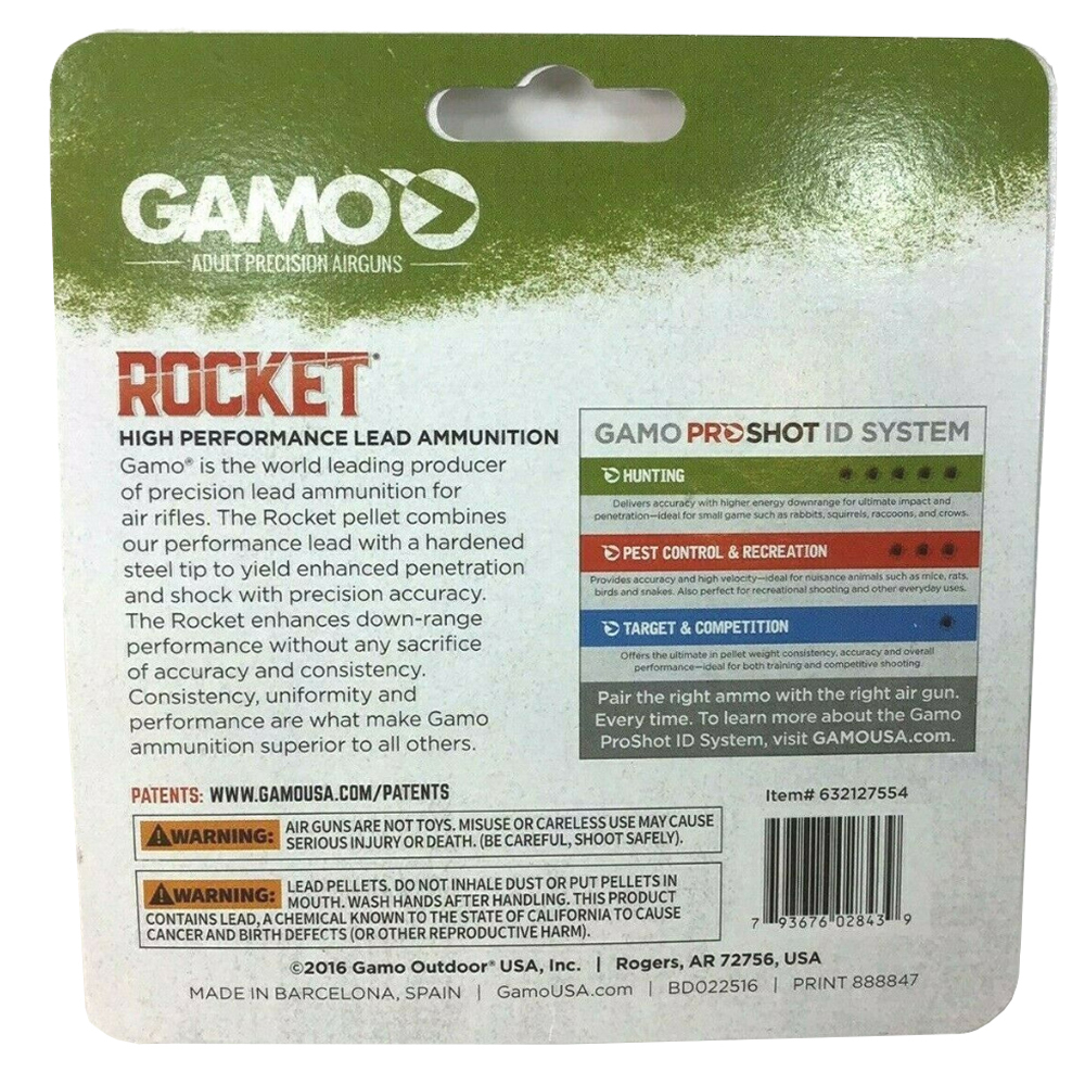 The Rocket pellets combine our performance lead with a hardened steel tip to yield enhanced penetration and shock with precision accuracy.The Rocket enhances down-range performance without any sacrifice of accuracy and consistency. Consistency, uniformity and performance are what make Gamo ammunition superior to all others.