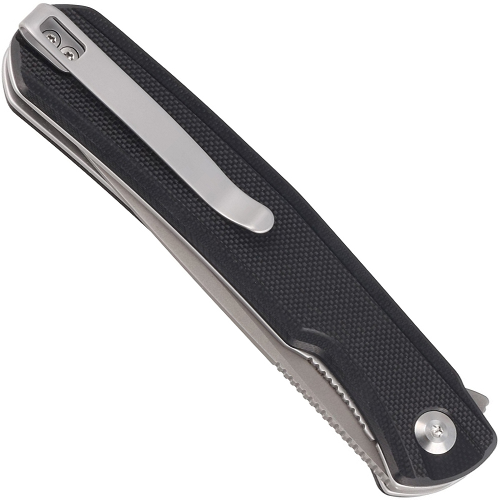 The Sencut Scitus represents a top-tier, lightweight EDC flipper knife. Its gray stonewashed D2 blade showcases a flat-ground drop point configuration, ensuring adaptability for slicing and piercing tasks. With a weight slightly over 3 ounces and a 3.47" blade, it fits snugly in the pocket and provides an excellent grip. The model exhibits black G10 handles with understated texturing, enhancing grip performance. Whether you're a seasoned knife connoisseur or new to pocket knives, you'll admire the meticulous attention to detail evident in these outstanding budget-friendly knives.