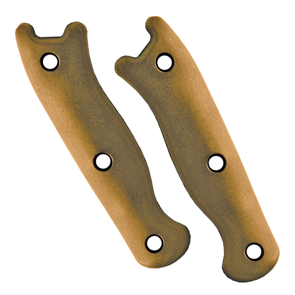 A modestly sized field knife perfect for belt or pack carry. Includes a MOLLE compatible Cordura sheath and an extra set of brown handles.