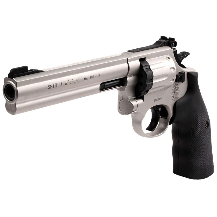 Quality is redefined with the Smith and Wesson 686 CO2 Pellet Revolver. This impressive 10-shot metal air gun not only shoots pellets out with amazing accuracy, but also fires at a powerful velocity of 425 FPS. Features include comfortable rubber grips, front and rear adjustable sights, and removable magazines for easy loading. This is a top-end revolver that performs as good as it looks.