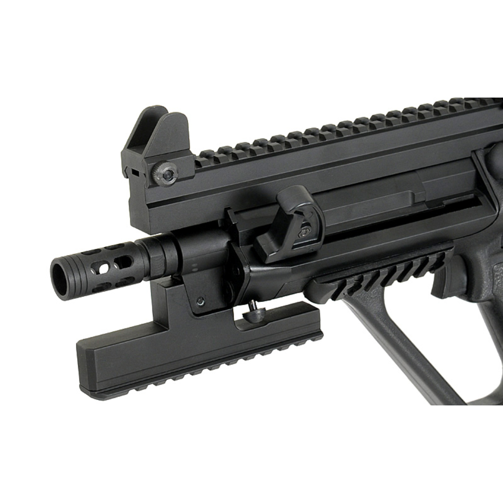 Its bullpup design which moves the core of the rifles action behind the trigger allows for the use of a full length rifle barrel in a weapon with the ergonomics of a sub-machine gun. Some other significant features include fully ambidextrous controls and reversible charging handle and shell ejection port allowing the rifle to be configured for both left and right handed shooters. The unique two stage trigger allows the user to fire in semi-auto and full-auto without needing to manipulate a selector switch; for semi-automatic fire, the operator will just pull the trigger half way and if fully-automatic fire was necessary, the operator needs to only pull the trigger all the way back.Chambered in the 5.56x45mm NATO cartridge for its ease of use and handling, the futuristic family of rifles in the AUG line can be quickly adapted to accommodate a wide variety of roles in the ever changing battlefield with just a quick swap of the barrel. The AUG is definitely a well-rounded combat weapon with a proven track record that can stand its own even with todays modern combat rifles.