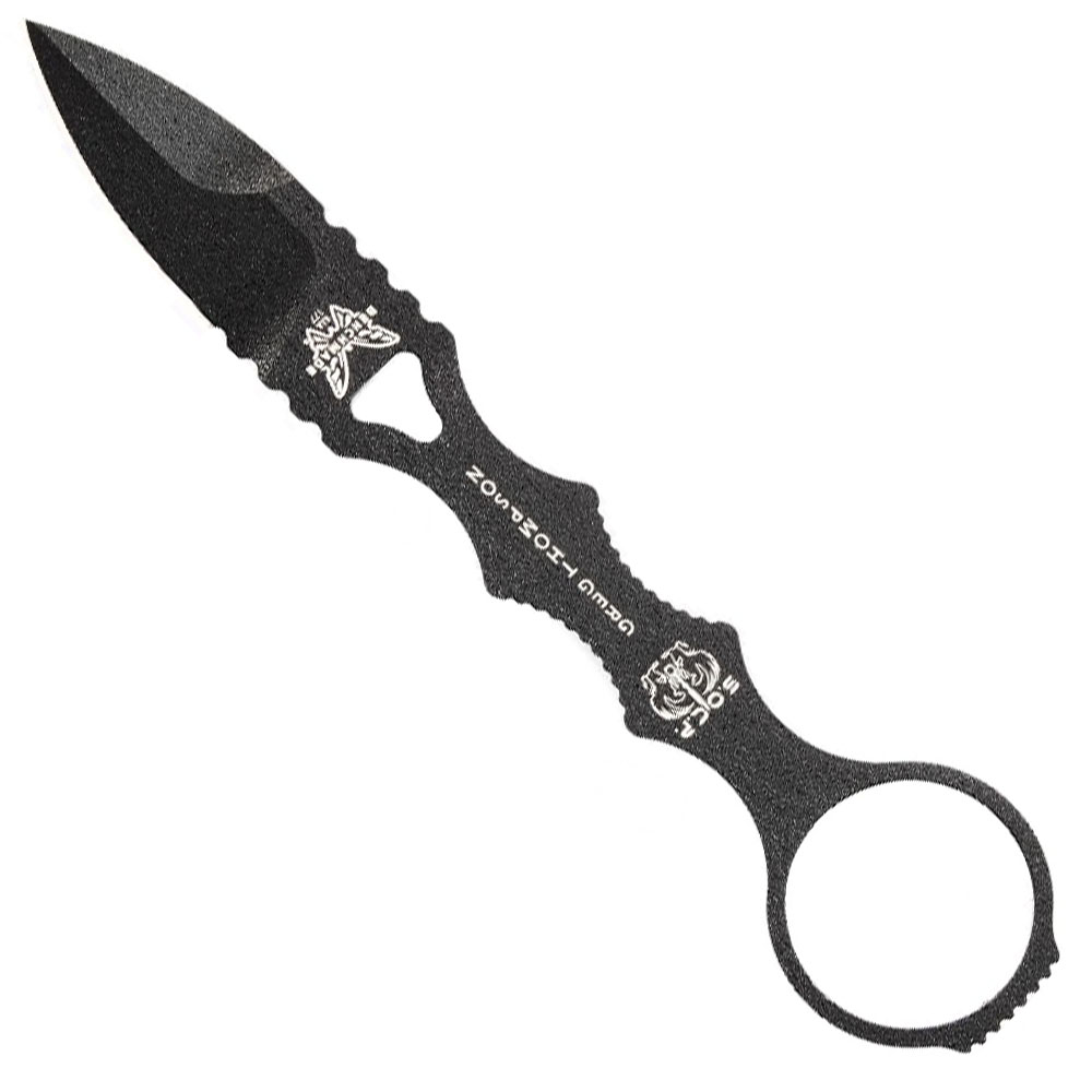 Based on the popular Benchmade SOCP fixed blade, this latest release has been scaled down for a more convenient carry especially with the sheath. The knife comes with a 440C blade in a black cerakote finish for superior edge retention and longer durability. Its handle has also been integrated with three finger grooves on both side as well as a kunai-style finger ring at the rear end to provide users with the grip dexterity they will usually look forward to in such a tool.