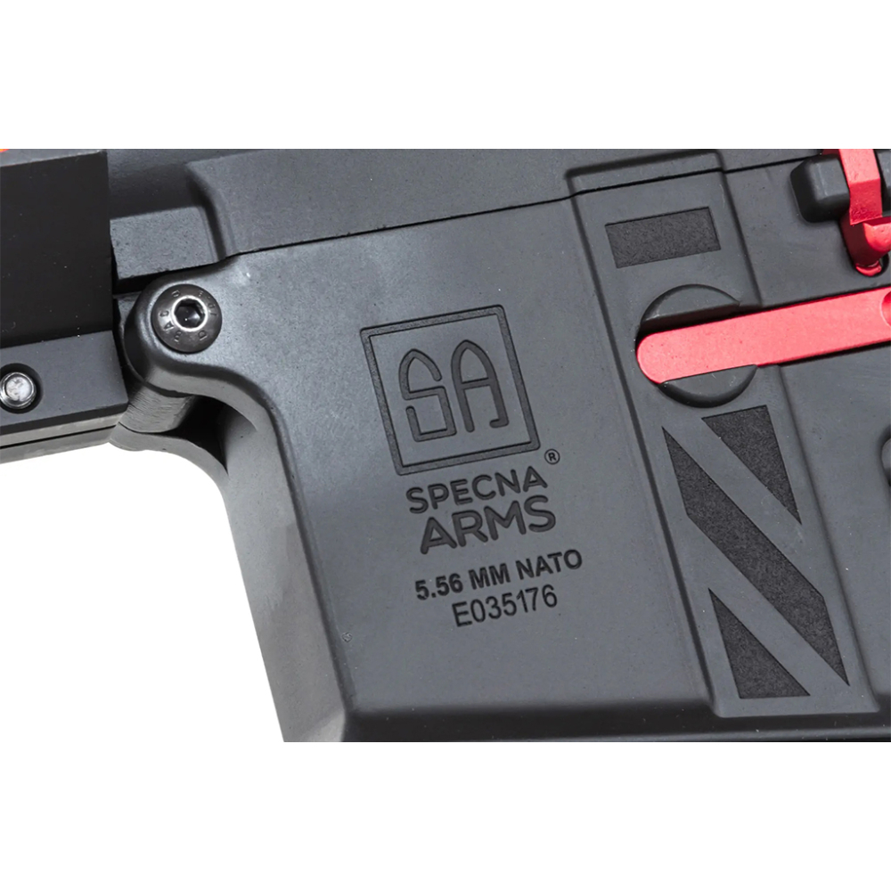 The Specna Arms SA-E39-L EDGE™ Light Ops Stock HAL ETU™ Red Airsoft Rifle, New For 2025, Is Built For Precision And Power. Featuring A Revolutionary HAL™ Chip For Advanced Programming, It Offers Customizable Fire Modes, Including Full-Auto, Semi-Auto, And Burst. The MLOK/RIS 22mm Mounting System And The Ergonomic Light Ops Stock Provide A Comfortable And Tactical Setup. With High-Quality Internals Like The ORION Gearbox And Precision Barrel, This Rifle Is Perfect For Both Indoor And Outdoor Gameplay.