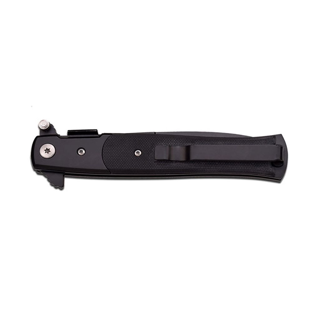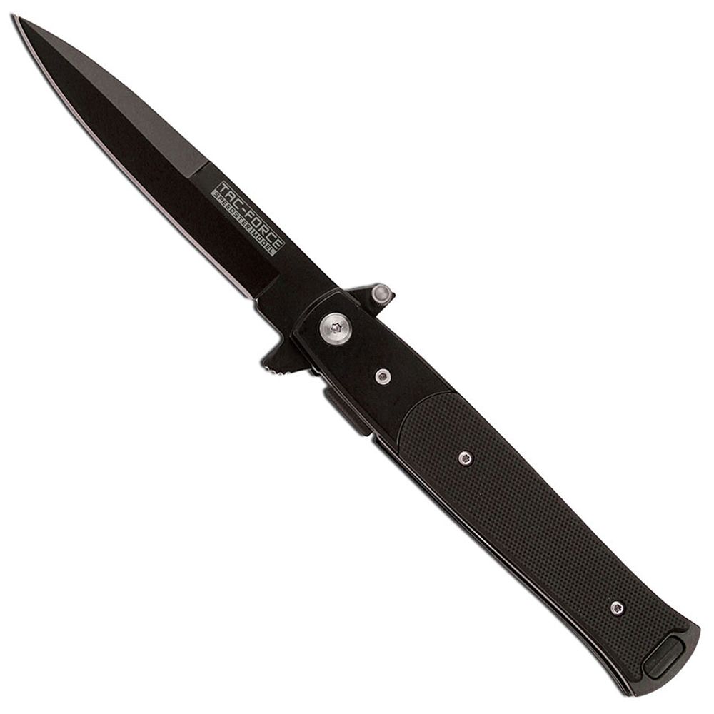 This Tac Force knife is an Italian stiletto style folder. The spear point blade deploys at switch-blade speed with a flipper fin and locks in place with a liner lock. This model features a black pakkawood handle and satin finished blade.