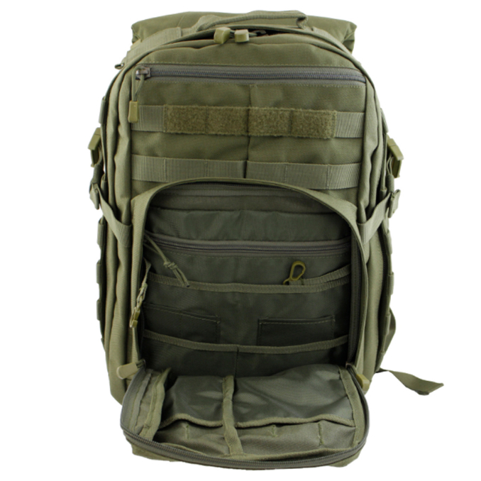 This Tactical 1/2-Day Backpack is a high-performance multipurpose bag that fills multiple roles, from a tactical assault pack to a hunting backpack to an emergency go-bag. 16 total compartments provide a wide range of storage options, each one sized for a specific use. Additional features on the backpack include an internal admin panel for organizing small accessories, a 60 oz. hydration pocket that keeps you on the move, and a fleece-lined sunglass pocket that protects your eyewear. An extensive wrap-around web platform is MOLLE compatible, allowing you to customize your storage to suit your needs. The backpack offers external compression straps, adjustable shoulder straps, and water-resistant construction to keep your gear dry and secure in any climate.