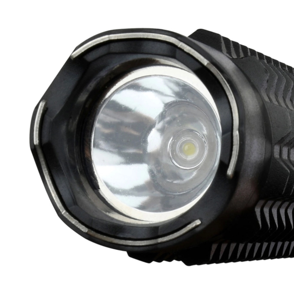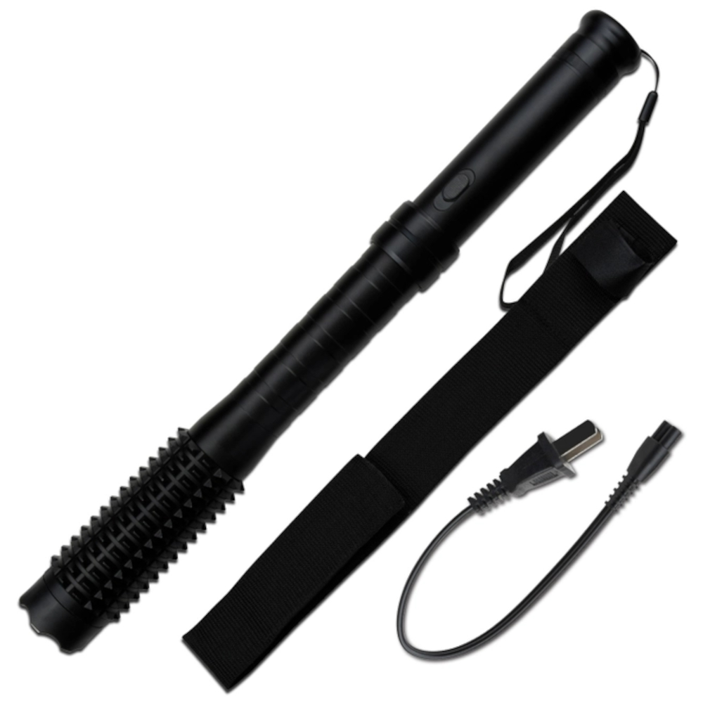 Presenting the Stun Gun with Flashlight - a compact and powerful self-defense tool. At a weight of just 0.43 lbs and a length of 4 inches, this stun gun is designed for easy carry and quick access. The handle is crafted from durable injection-molded ABS, providing a secure grip. It comes with a leather sheath for convenient and safe storage. Whether for personal protection or as a handy flashlight, this device is a versatile addition to your safety arsenal.