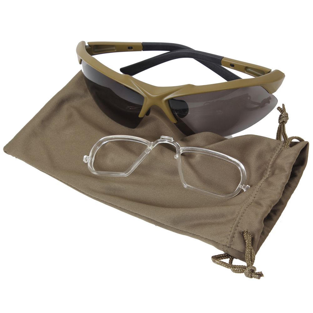 Tactical Eyewear Kit has everything you need to keep your eyes protected and your vision clear. The kit comes with a pair of high-quality tactical glasses with polycarbonate frames that feature prescription lens insert. The lenses are made of a shatterproof 2mm polycarbonate smoke lens with UV400 protection and also includes both yellow and clear interchangeable lenses. Also, the tactical eyewear kit comes with a cleaning pouch and a soft carry case with belt loops and a hook.