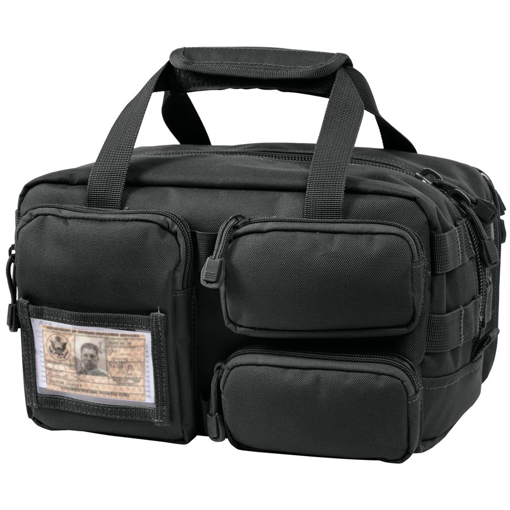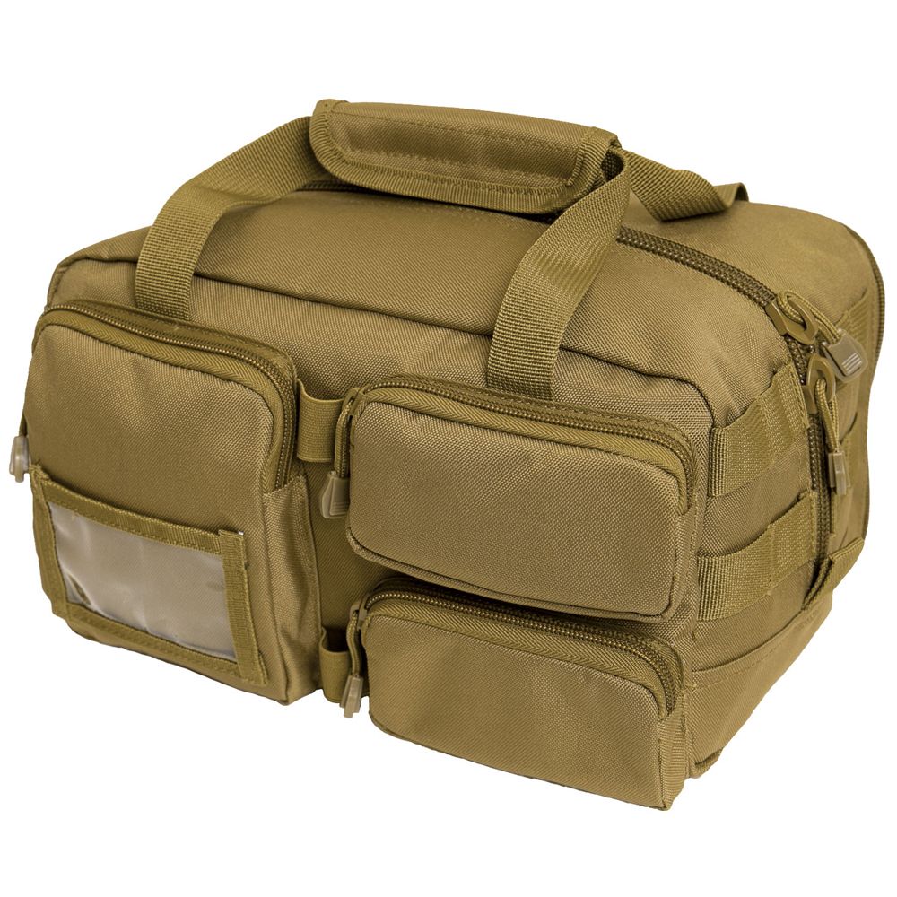 Took the traditional military mechanic’s tool bag to a whole new level. Made with durable denier polyester, Tactical Tool Bag is MOLLE compatible and measures 11.25'' x 8'' x 6.75''. This military toolkit bag has a large main zippered compartment that contains individual slots to store tools and other gear. A total of 3 external zippered pouches (2 small and 1 large) are featured on this MOLLE tool bag with one of them having an identification window on the front. The rear drop down compartment on this tactical toolkit bag contains pen/flashlight slots, cards holders, and a removable and expandable snap closure pouch for extra storage.