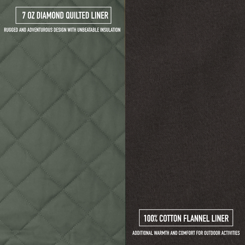 - Warm and comfortable composition: With 7 OZ Diamond Quilting, 100% Cotton Twill Outer Shell, 100% Cotton Flannel Body Liner, 100% Polyester Taffeta Sleeve Liners, And 3.5 OZ Polyester Filling, Our Insulated Jackets Provide All-Day Comfort And Warmth.