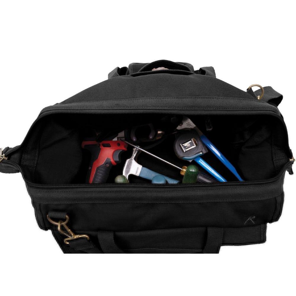 Embark on any project confidently with our Ultra Force Renovator Tool Bag - Reinforced. Its two-way zipper and wide mouth ensure swift and effortless access to your gear. The internal hinge frame is crafted for convenience, staying open while you arrange your tools and folding neatly after loading. With ample space for all your essential tools and equipment—screwdrivers, hammers, tape measures, levels, wrenches, pliers, jumper cables, and more—it's your perfect companion for any task.