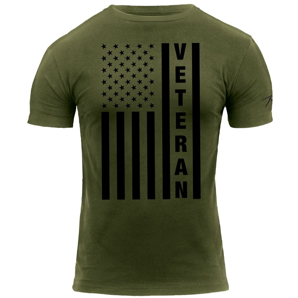 Veteran Flag T-Shirt features a vertical US flag with “Veteran” lettering running down the full length of the flag design. Made of lightweight cotton/polyester blend and a tagless printed red label, the military veteran shirt is designed to provide a comfortable fit and feel.