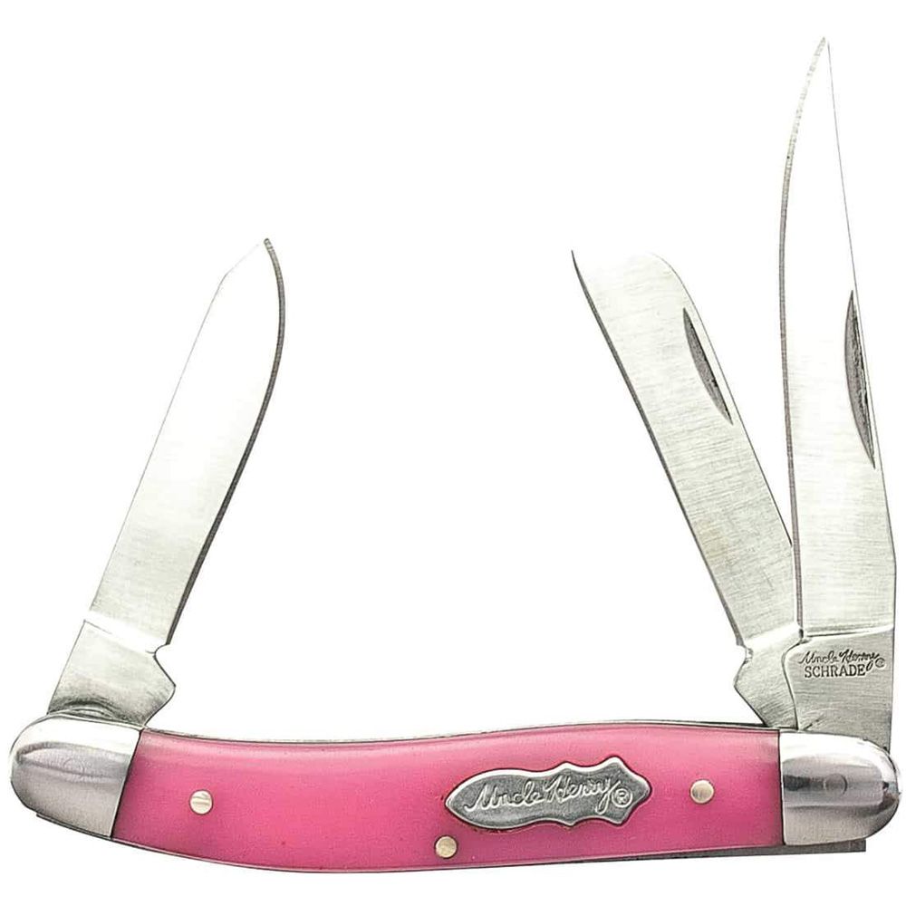 This Uncle Henry Premium Stock Folding Pocket Knife comes with a 7Cr17MoV High Carbon Stainless Steel Turkish Clip Point Blade, Sheepfoot Blade, and Spey Blade with Nail Pulls, Staglon Handle with Nickel Silver Bolsters, Brass Pins, and Heat Treated Back Springs.