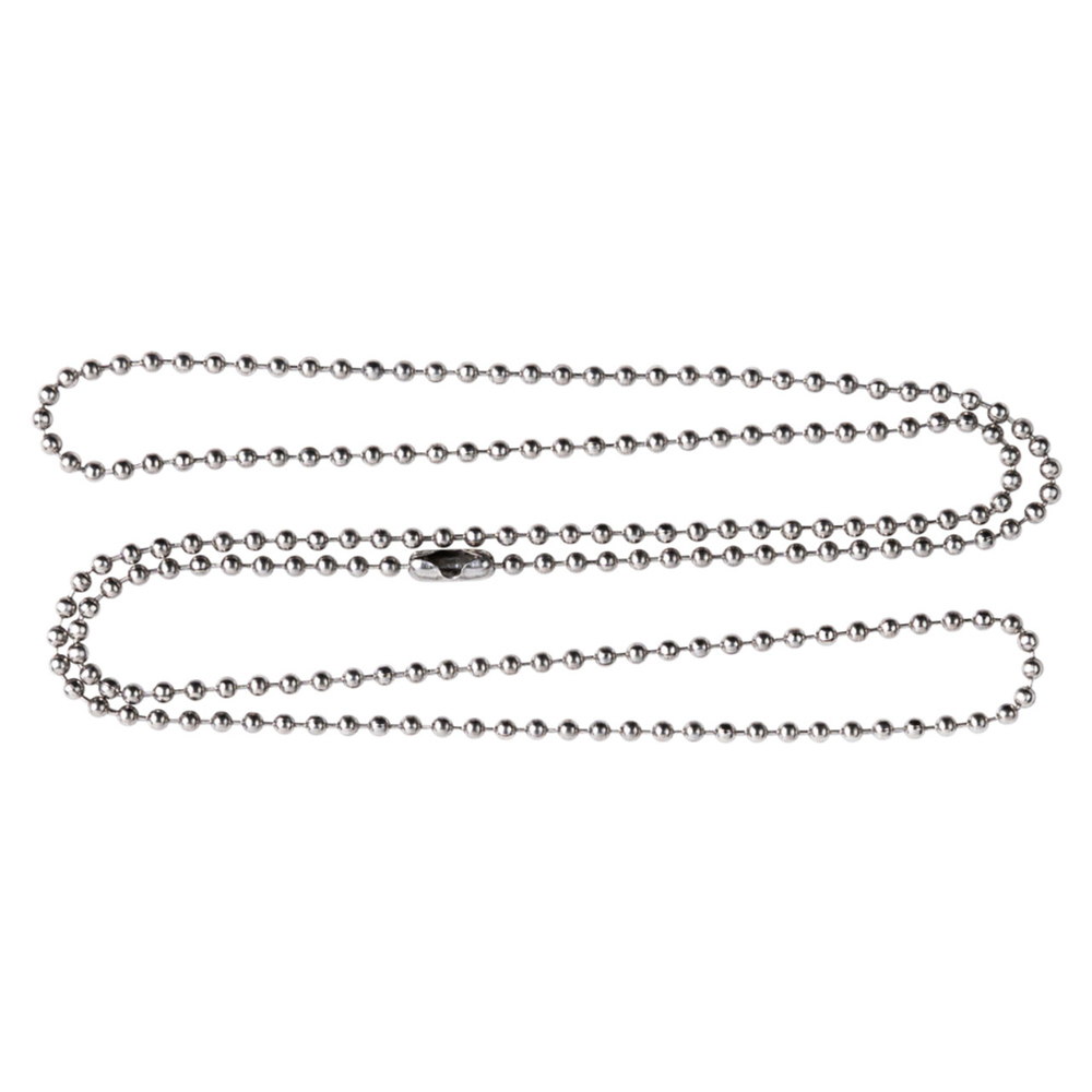Stainless steel ball chain. Comes with a connector attached to one end. Ball diameter: 3/32" or 2.4mm. Made in USA.