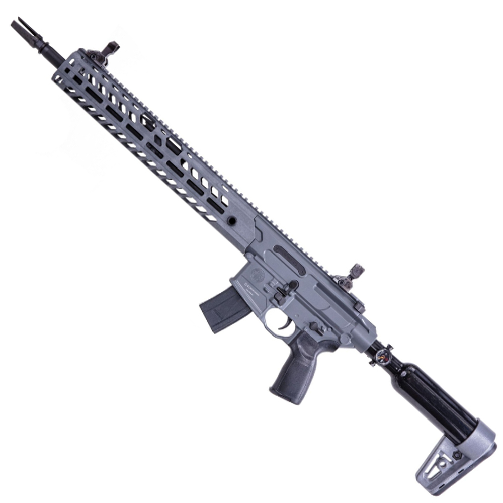 The MCX VIRTUS PCP Air rifle is the latest expansion to the SIG AIR precision line of airguns, and the introduction of SIG AIR products to the pre-charged pneumatic (PCP) category of airguns. The MCX VIRTUS PCP doubles the muzzle energy of classic CO2 models and uses the SIG Rapid Pellet Magazine making it a great tool for target training and defending against unwanted varmints.
