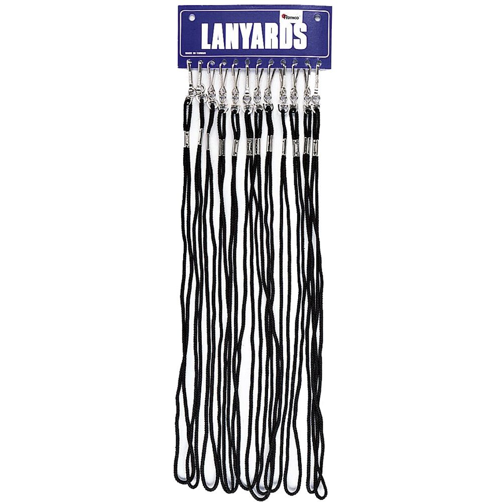 Whistle Lanyards are offered 12 per display card, priced per each, in assorted colors or all black.