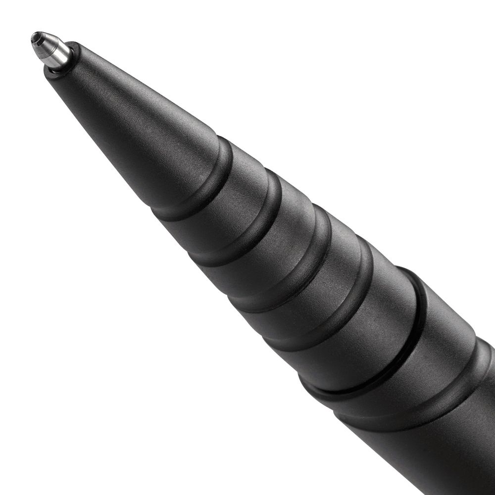 The 6061 aircraft-grade aluminum body houses a legendary Fisher Space Pen® Ink Cartridge; truly top of the line when it comes to everyday carry. The sleek instrument features a black, hard anodized finish and shapely grooves to improve grip. On one end, a cap with a removable pocket clip clicks securely in place, on the other, a blunted point innocuously stays at the ready if trouble arises.