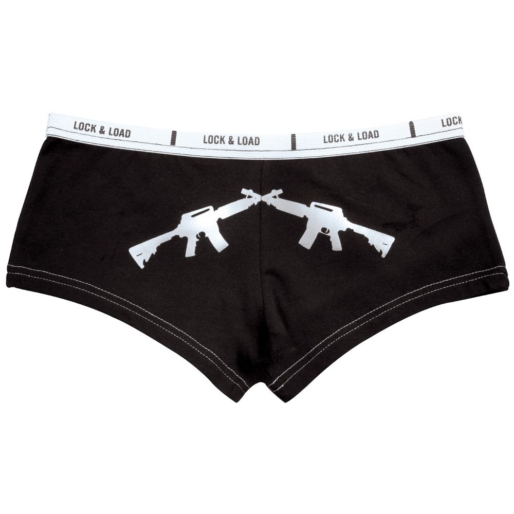 Womens shorts is a great fashionable attire and a type of clothing which women love to wear to flaunt their shaped bodies. The Women Black Crossed Rifles Booty Shorts are one such type which are really cool and is ever popular among women. The rear of the booty shorts have been highlighted with two black rifles crossed to each other. The black colored shorts are made in various sizes for wider availability. These shorts are very soft and comfortable to wear as the fabric is mainly of cotton and spandex material has been added to give the shorts elasticity to the shorts.